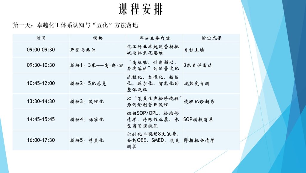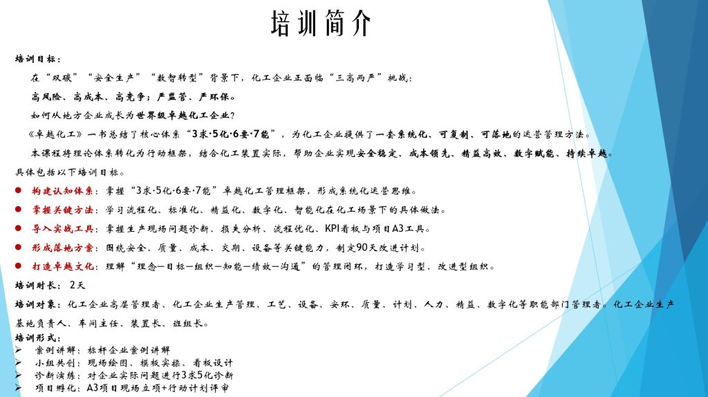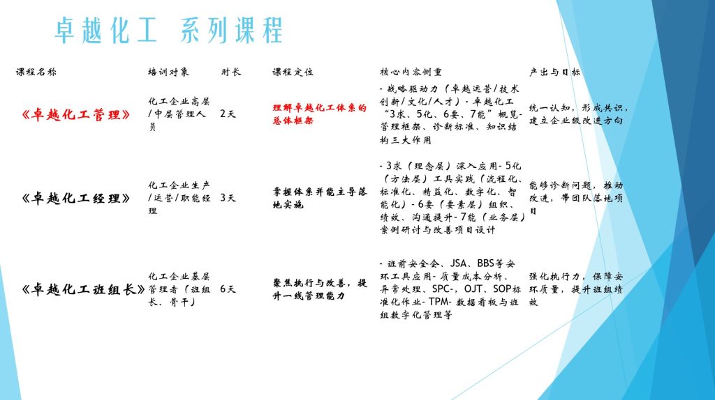 卓越化工系列课程(卓越化工管理体系、卓越化工经理、卓越化工班组长)