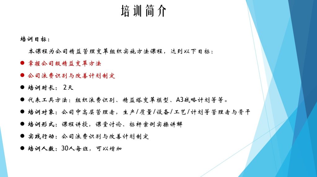 精益化工系列课程(精益化工管理/精益黄带/精益绿带)